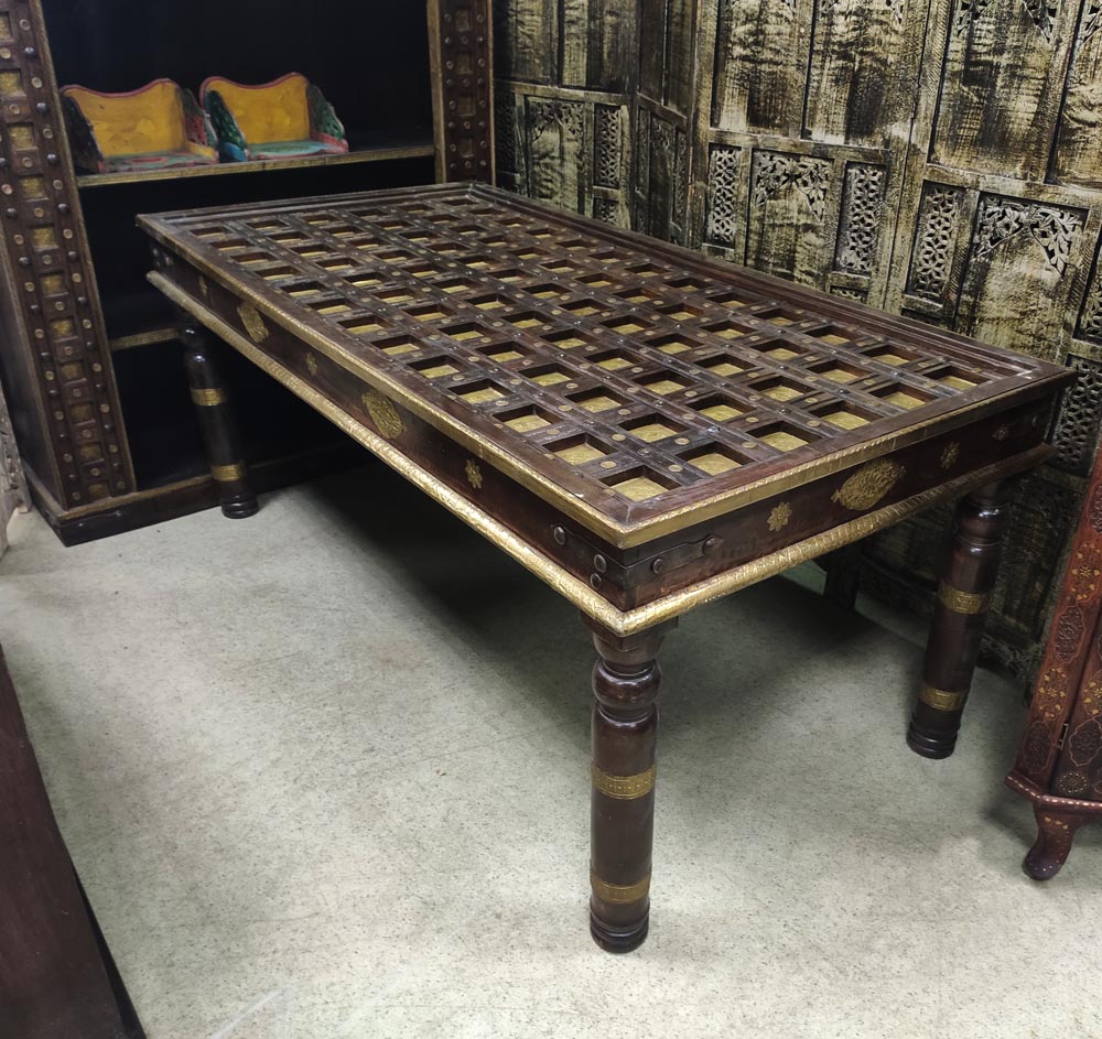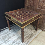 Стол индийский из массива дерева и украшением из латуни.