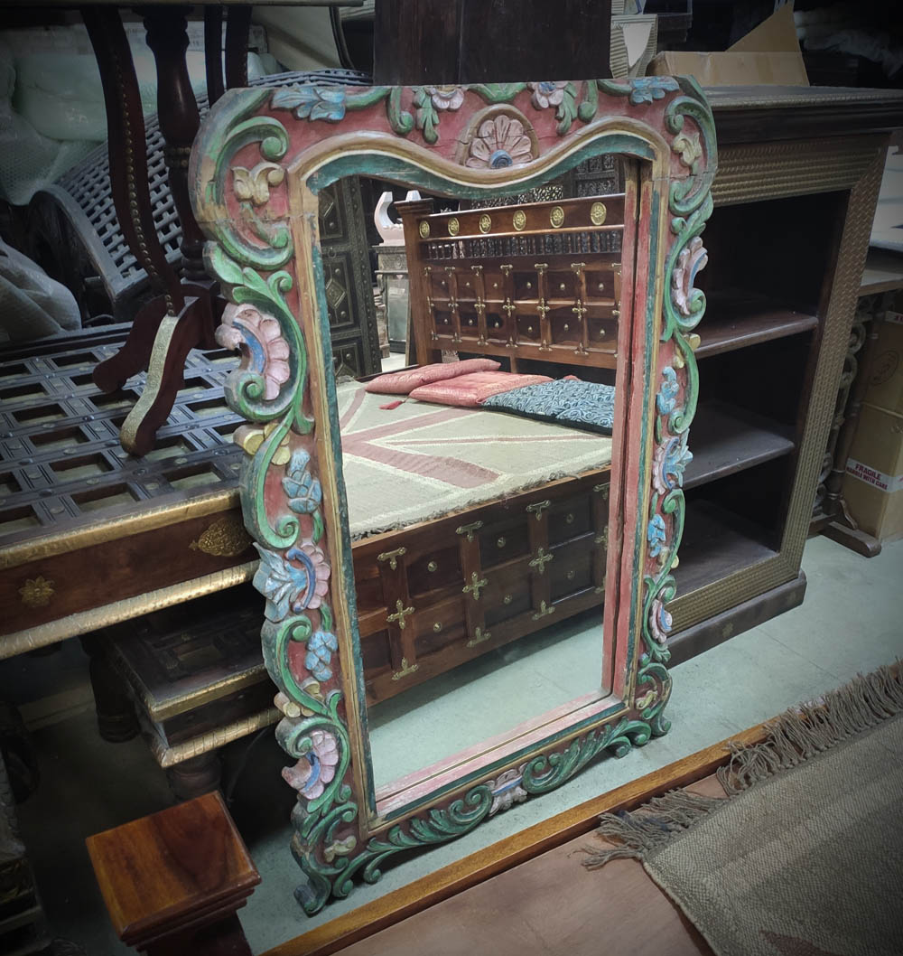 Зеркало "Цветочный орнамент", резьба, Индия