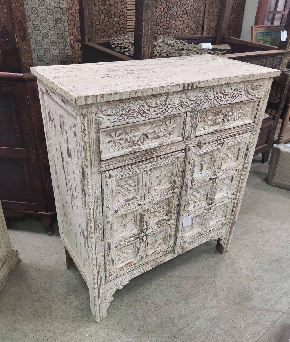 Тумба "Прованс белый", с ящиками, массив, резьба