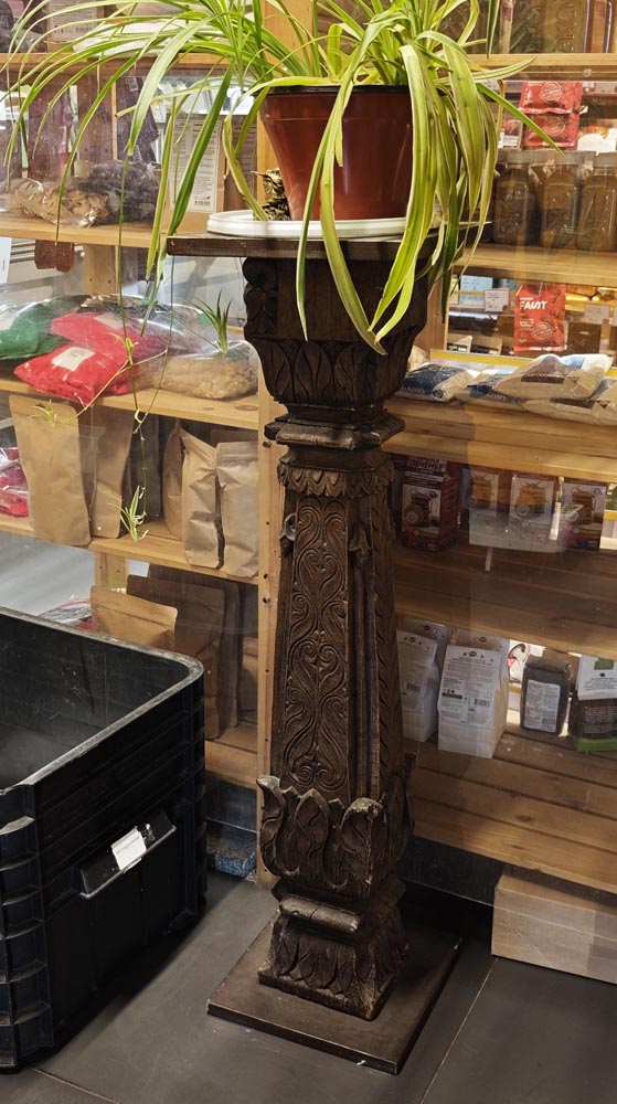 Колонна из Индии на подставке из металла для декорации интерьера в колониальном или восточном стиле