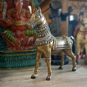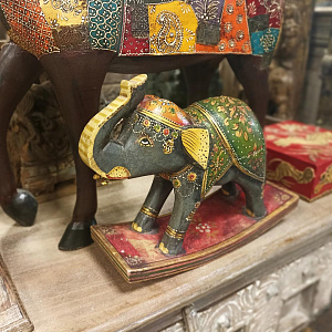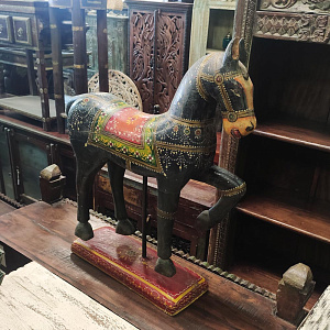 Скульптура индийская "Лошадь-качалка", массив дерева, роспись