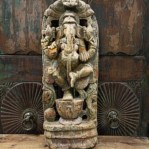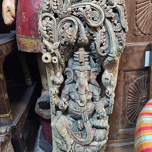 Скульптура "Шри Ганеш", античная резьба по дереву